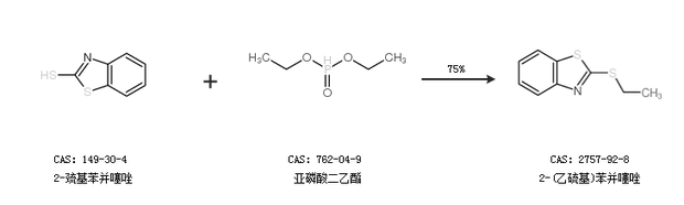 1.通过2-巯基苯并噻唑和亚磷酸二乙酯合成2-(乙硫基)苯并噻唑,收率约75%;