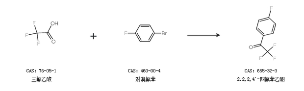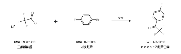 1.通过三氟醋酸鋰和对溴氟苯合成2,2,2,4''-四氟苯乙酮,收率约53%;