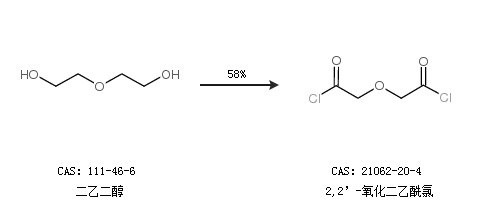 2.通过二乙二醇合成2,2’-氧化二乙酰氯,收率约58%;