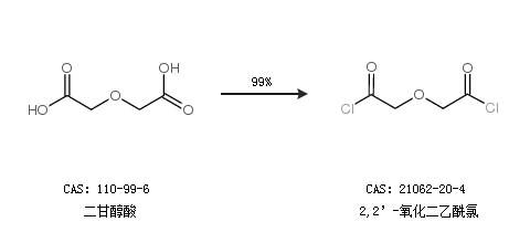 1.通过二甘醇酸合成2,2’-氧化二乙酰氯,收率约99%;
