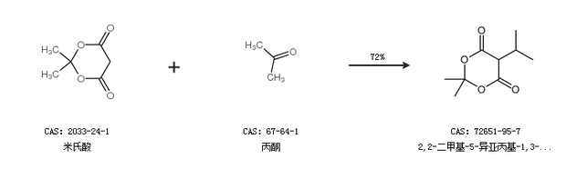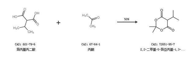 2.通过异丙基丙二酸和丙酮合成2,2-二甲基-5-异亚丙基-1,3-二噁烷-4,6-二酮,收率约50%;