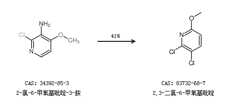 1.通过2-氯-6-甲氧基吡啶-3-胺合成2,3-二氯-6-甲氧基吡啶,收率约41%;