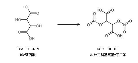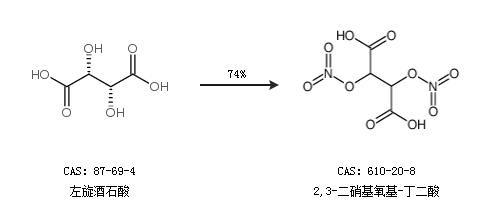 1.通过左旋酒石酸合成2,3-二硝基氧基-丁二酸,收率约74%;