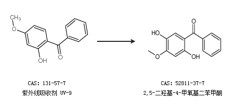 2.通过紫外线吸收剂 UV-9合成2,5-二羟基-4-甲氧基二苯甲酮