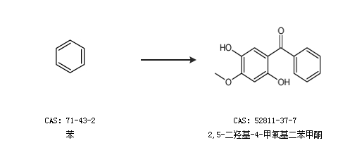 1.通过苯合成2,5-二羟基-4-甲氧基二苯甲酮