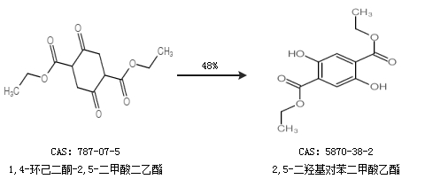 2.通过1,4-环己二酮-2,5-二甲酸二乙酯合成2,5-二羟基对苯二甲酸乙酯,收率约48%;
