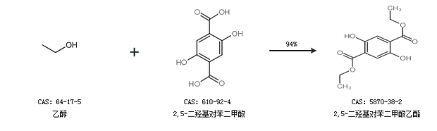1.通过乙醇和2,5-二羟基对苯二甲酸合成2,5-二羟基对苯二甲酸乙酯,收率约94%;