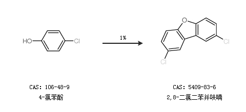 2.通过4-氯苯酚合成2,8-二氯二苯并呋喃,收率约1%;
