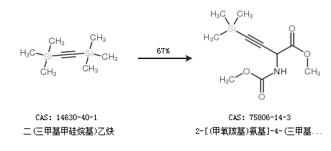 1.通过二(三甲基甲硅烷基)乙炔合成2-[(甲氧羰基)氨基]-4-(三甲基硅酯)-3-丁酸甲酯,收率约67%;