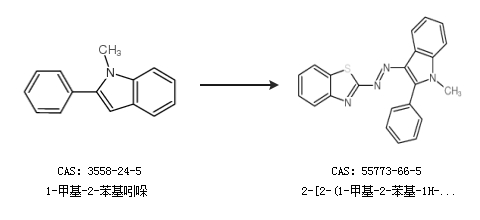 中文名称 2-[2-(1-甲基-2-苯基-1H-吲哚-3-基)偶氮]苯并噻唑