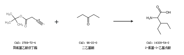 2.通过异氰基乙酸叔丁酯和二乙基酮合成2-氨基-3-乙基戊酸