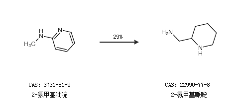1.通过2-氨甲基吡啶合成2-氨甲基哌啶,收率约29%;