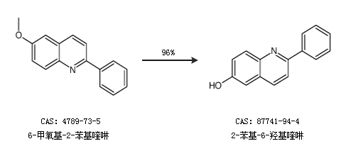1.通过6-甲氧基-2-苯基喹啉合成2-苯基-6-羟基喹啉,收率约96%;
