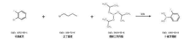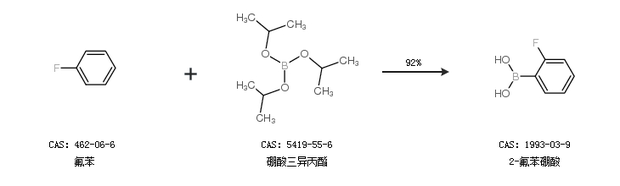 2.通过氟苯和硼酸三异丙酯合成2-氟苯硼酸,收率约92%;