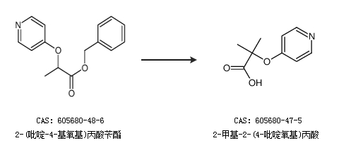 1.通过2-(吡啶-4-基氧基)丙酸苄酯合成2-甲基-2-(4-吡啶氧基)丙酸