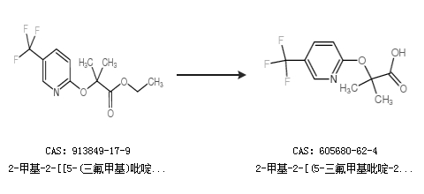 英文别名 2-methyl-2-(5-trifluoromethyl-2-pyridyloxy)propionic acid;2-methyl-2-((5-(trifluoromethyl)pyridin-2-yl)oxy)propanoic acid;2-(5-trifluoromethyl-2-pyridyloxy)-2-methylpropionic acid;