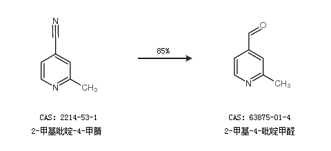 2.通过2-甲基吡啶-4-甲腈合成2-甲基-4-吡啶甲醛,收率约85%;
