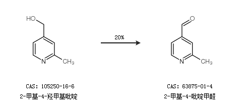 1.通过2-甲基-4-羟甲基吡啶合成2-甲基-4-吡啶甲醛,收率约20%;