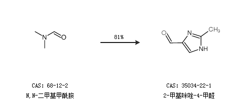 1.通过N,N-二甲基甲酰胺合成2-甲基咪唑-4-甲醛,收率约81%;