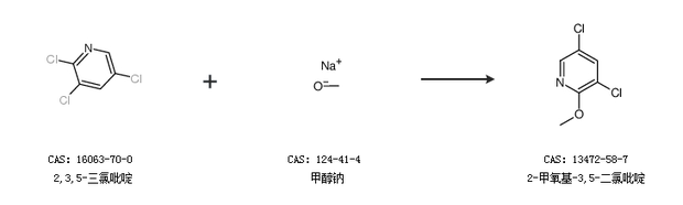 1.通过2,3,5-三氯吡啶和甲醇钠合成2-甲氧基-3,5-二氯吡啶
