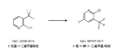 2.通过2-羟基-3-三氟甲基吡啶合成2-氯-5-碘-3-(三氟甲基)吡啶