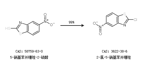 2.通过5-硝基苯并噻唑-2-硫醇合成2-氯-5-硝基苯并噻唑,收率约99%;