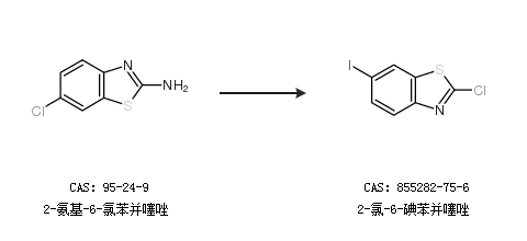 2.通过2-氨基-6-氯苯并噻唑合成2-氯-6-碘苯并噻唑