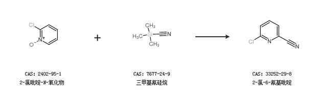 2.通过2-氯吡啶-N-氧化物和三甲基氰硅烷合成2-氯-6-氰基吡啶
