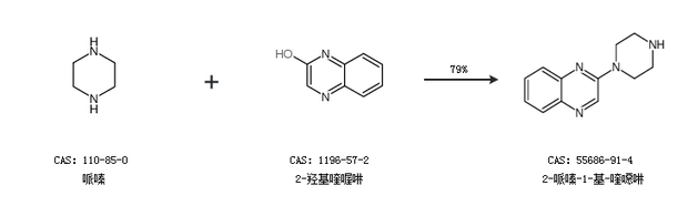 1.通过哌嗪和2-羟基喹喔啉合成2-哌嗪-1-基-喹噁啉,收率约79%;