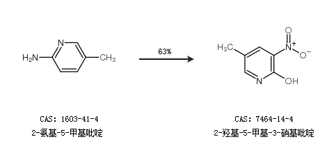 1.通过2-氨基-5-甲基吡啶合成2-羟基-5-甲基-3-硝基吡啶,收率约63%;