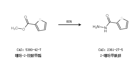 1.通过噻吩-2-羧酸甲酯合成2-噻吩甲酰肼,收率约80%;
