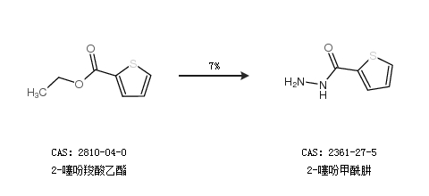 2.通过2-噻吩羧酸乙酯合成2-噻吩甲酰肼,收率约7%;