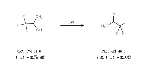 2.通过1,1,1-三氟异丙醇合成2-溴-1,1,1-三氟丙烷,收率约87%;