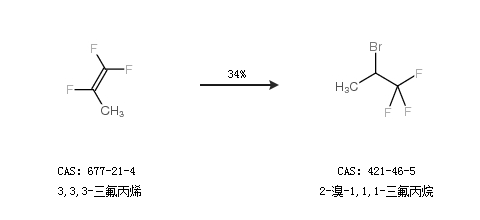 1.通过3,3,3-三氟丙烯合成2-溴-1,1,1-三氟丙烷,收率约34%;