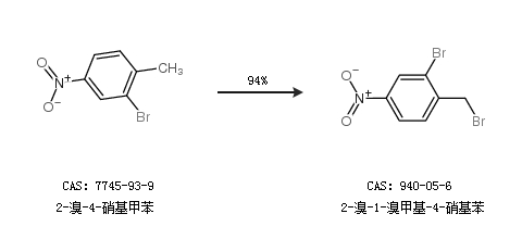 2.通过2-溴-4-硝基甲苯合成2-溴-1-溴甲基-4-硝基苯,收率约94%;