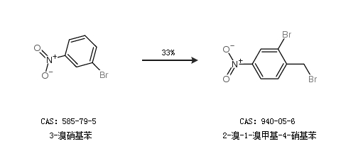1.通过3-溴硝基苯合成2-溴-1-溴甲基-4-硝基苯,收率约33%;