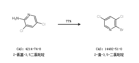 1.通过2-氨基-3,5二氯吡啶合成2-溴-3,5-二氯吡啶,收率约77%;