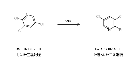 2.通过2,3,5-三氯吡啶合成2-溴-3,5-二氯吡啶,收率约99%;
