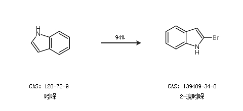 1.通过吲哚合成2-溴吲哚,收率约94%;