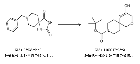 2.通过8-苄基-1,3,8-三氮杂螺[4.5]癸烷-2,4-二酮合成2-氧代-4-噁-1,9-二氮杂螺[5.5]十一烷-9-羧酸 1,1-二甲基乙酯