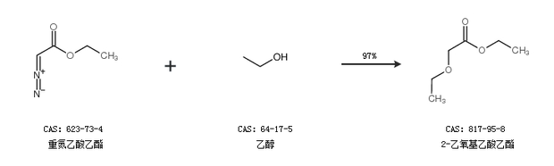 2.通过重氮乙酸乙酯和乙醇合成2-乙氧基乙酸乙酯,收率约97%;