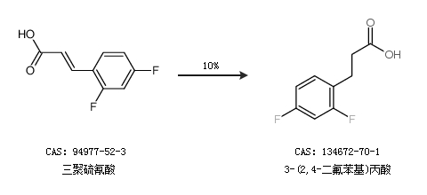 1.通过三聚硫氰酸合成3-(2,4-二氟苯基)丙酸,收率约10%;