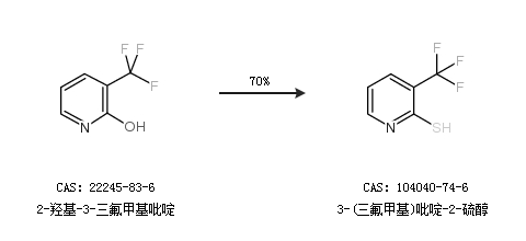 1.通过2-羟基-3-三氟甲基吡啶合成3-(三氟甲基)吡啶-2-硫醇,收率约70%;