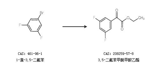 1.通过1-溴-3,5-二氟苯合成3,5-二氟苯甲酰甲酸乙酯