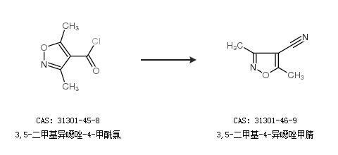 2.通过3,5-二甲基异噁唑-4-甲酰氯合成3,5-二甲基-4-异噁唑甲腈
