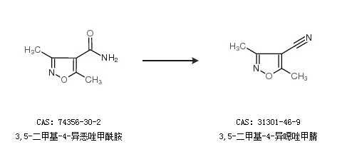 1.通过3,5-二甲基-4-异恶唑甲酰胺合成3,5-二甲基-4-异噁唑甲腈