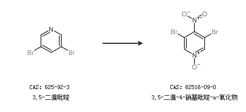 2.通过3,5-二溴吡啶合成3,5-二溴-4-硝基吡啶-n-氧化物