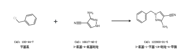 1.通过苄基氯和3-氨基-4-氰基吡唑合成3-氨基-1-苄基-1H-吡唑-4-甲腈