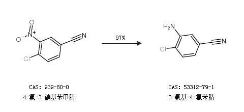 1.通过4-氯-3-硝基苯甲腈合成3-氨基-4-氯苯腈,收率约97%;