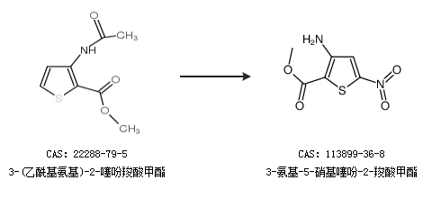 1.通过3-(乙酰基氨基)-2-噻吩羧酸甲酯合成3-氨基-5-硝基噻吩-2-羧酸甲酯